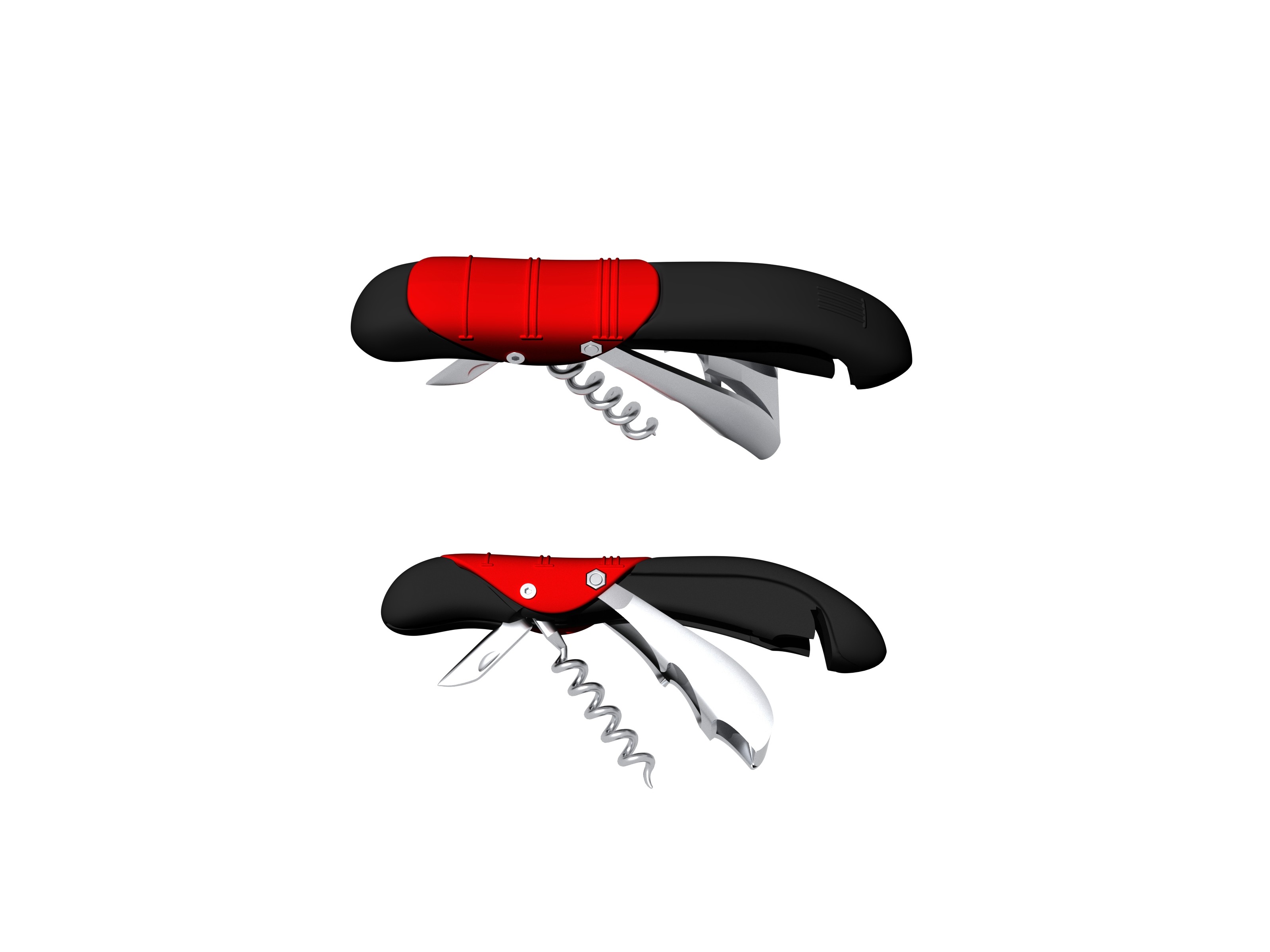 Das Endprodukt ist ein kompakter, stilvoller Korkenzieher mit klarer Linienführung und ergonomischem Aufbau. Die Mechanik erlaubt sicheres, kraftsparendes Öffnen. Die vier gestalterischen Markierungen leiten durch den Prozess. Materialien und Farben sind variabel, einzelne Teile austauschbar.