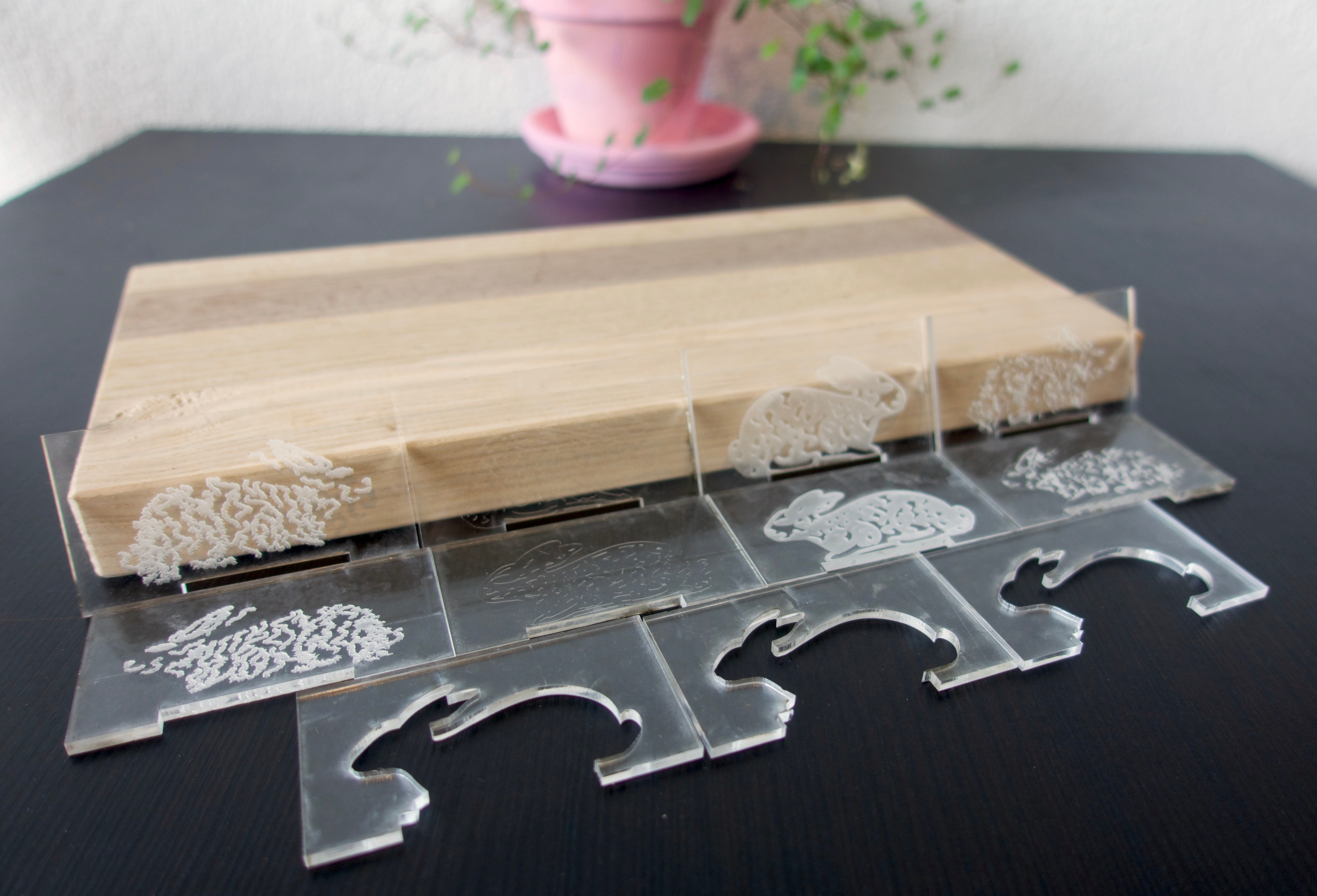 Form und Struktur wurden iterativ mit Adobe Illustrator entworfen und mittels Lasercutter aus Plexiglas gefertigt. Es entstanden mehrere Generationen an Gussformen, wobei Gravurtiefe und Eingussöffnung optimiert wurden. Die Schokoladenherstellung erfolgte in Kooperation mit einer Fachperson – erste Gussversuche wurden dokumentiert und führten zur finalen Serie.