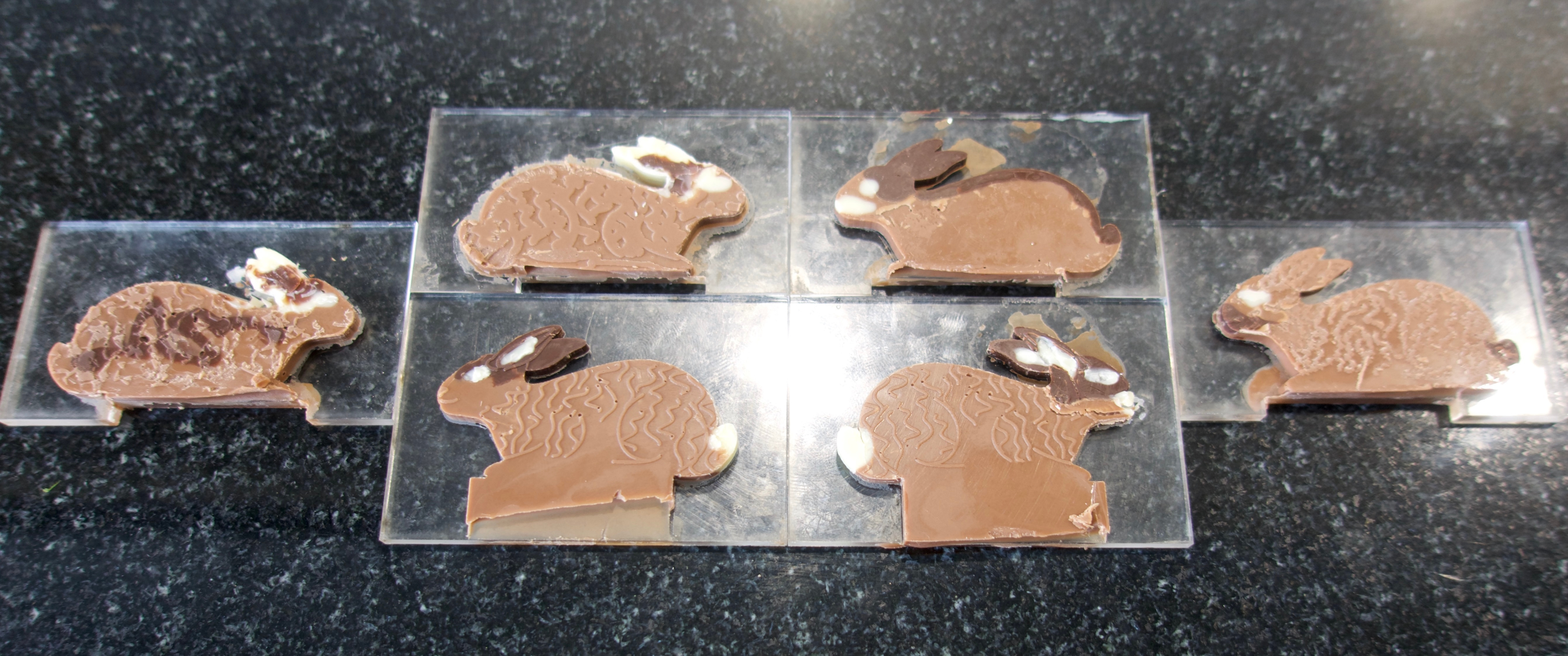 Das finale Produkt ist ein Set von sechs Schokoladenhasenplatten in einer stabilen, plastikfreien Verpackung. Die Hasen lassen sich direkt konsumieren, ohne zu zerbrechen. Jede Form zeigt individuelle Fellstrukturen und bietet haptische sowie visuelle Vielfalt. Die Box dient gleichzeitig als Transport- und Präsentationslösung. Der modulare Aufbau ermöglicht eine saubere Herstellung, einfache Entformung und Wiederverwendung der Gussformen.
